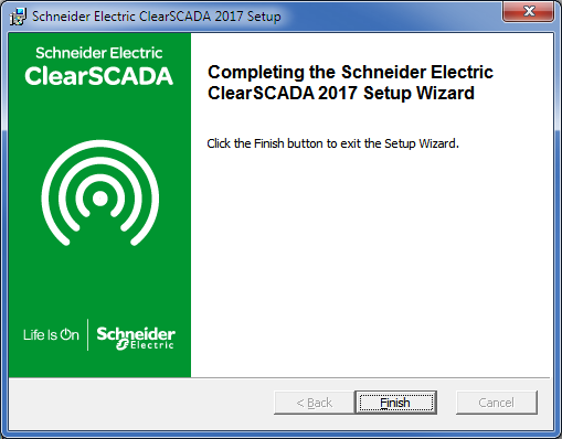 When the installation is complete, the Finish ‘page’ is displayed. If you have chosen to install ClearSCADA server or client software, you may also notice that new icons have been added to your desktop.
