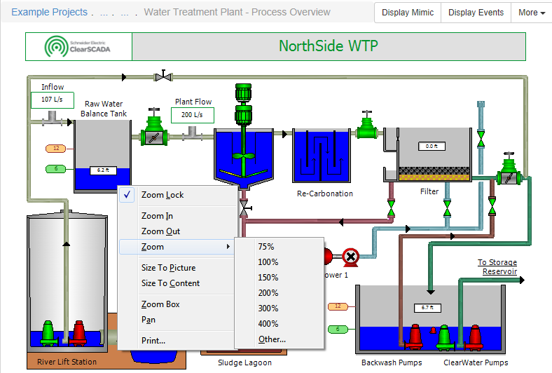 - Size To Picture—Use to set the Mimic to a level of magnification that displays the entire Mimic at the maximum size in the available space. The aspect ratio of the Mimic is maintained.