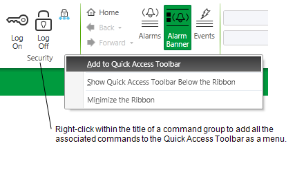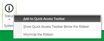 - Right-click on the title of the command group and select Add to Quick Access Toolbar.