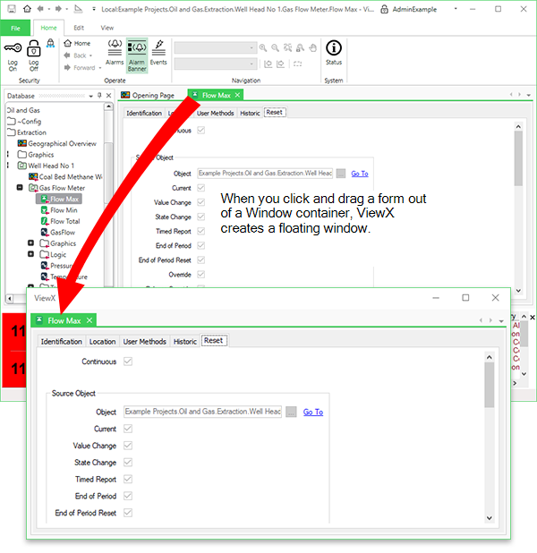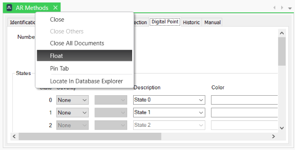 - Right click on the document window's tab and select the Float option from the context-sensitive menu that appears. The window is detached from the main display area.
