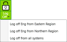 3. In the Security command group, select the drop-down menu for the Log Off command. The drop-down menu is only available if ViewX is connected to more than one system.