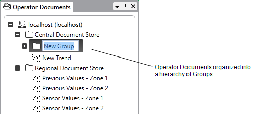 - Move documents into the new Group by selecting them in the Operator Document Store tree-structure and dragging them into the Group. Similarly, you can move documents out of the Group using the same technique.