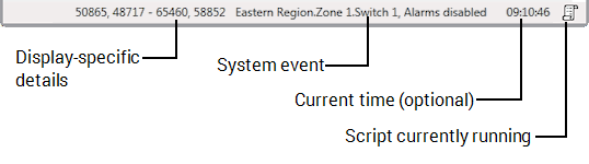- System event details—By default, the status bar shows condition events (events relating to alarms) and tracking events (events relating to user interaction with the system).