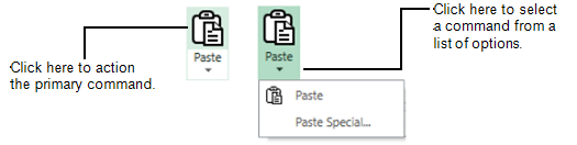 - Action/List—This type of control combines an instant action control with a list of options. The main section of the command control causes a primary action to be performed immediately. The drop-down menu allows you to choose an option from a list of available commands.
