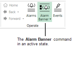 - Select/Deselect—Clicking on the command causes the button to change between Active and Inactive states. While Active, the command displays a colored background and causes a continuous effect. For example, selecting the Alarm Banner command will display the Alarm Banner until the command is selected again.