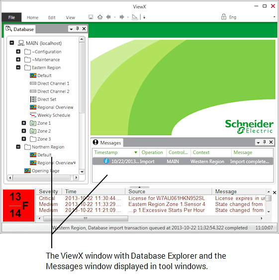 Tool windows display interface components that are used to configure, diagnose or navigate a ClearSCADA system. These include the Explorer Bars and the Messages window.