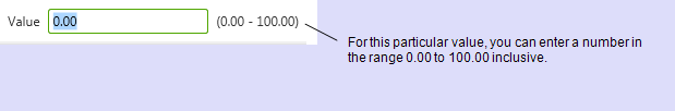 Enter a value that is within the range of supported values for that particular property. (The range varies, depending on the item’s configuration.) The supported range is displayed in parentheses next to the field on the pick action’s window.