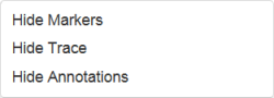 The options are equivalent to those that are available when you view a Trend on a ViewX client. Once you opt to hide a feature, you are offered a 'Show <feature>' option in place of the 'Hide <feature>' option. For more information, see Using Trends.