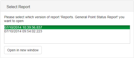 - Select the required version of the report (if multiple generated versions exist), and then select the Open in new window button.