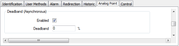If you are using a server that supports the OPC DA 3.0 protocol and it is configured to read asynchronously, you can also set the Deadband percentage within an item. This allows you to override the Deadband set for the group within which the item resides.