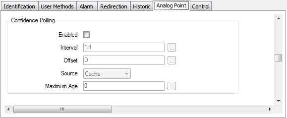 The Confidence Polling section allows you to configure additional polling to avoid the data becoming stale by forcing points to be updated periodically. To use Confidence Polling you need to enable and complete the Confidence Polling section on the relevant Advanced OPC configuration Forms: