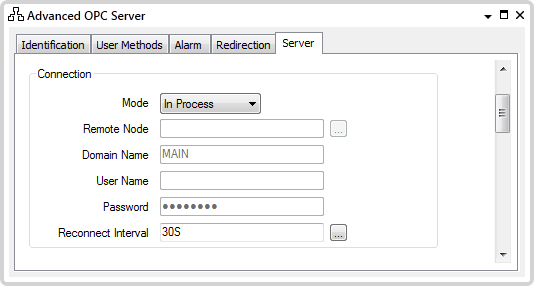 Use the Connection section of the Server tab to define the connection to the OPC DA Server: