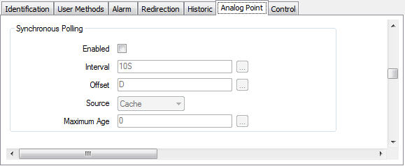 Use the fields within the Synchronous Polling section on an Advanced OPC Point Form to specify polling that ClearSCADA is to apply to that particular point. The individual point polling occurs in addition to the group polls.