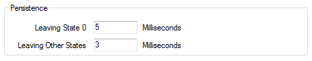 Use Persistence to stop momentary changes in point value from changing the state of a point. This stops the driver from processing fleeting changes in point state and reporting those fleeting changes to the server. When a point that supports persistence changes value, any change of point state is delayed until the point remains in the new state for a specified amount of time. If the point does not remain in the new state for the required amount of time, no change in point state is recorded.