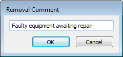 When you select the Remove with Comment option, the Removal Comment window is displayed. Enter your comment in the window.