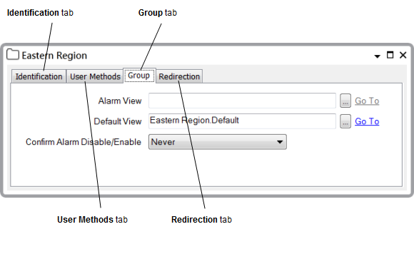 - Define whether confirmation is required when an operator attempts to disable or enable the group’s alarms (see Requesting Confirmation of Action Requests).