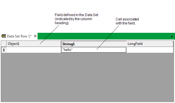 A Data Set Row consists of a single row of cells. The number of columns within the row is defined by the Data Set with which the Data Set Row is associated (you add fields to the Data Set and those fields appear as columns in the Data Set Row).