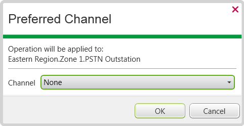 With PSTN communications, the association between an outstation and channel is only made during run time. If you want the ClearSCADA server to contact an outstation via a particular PSTN channel in preference to any other PSTN channels, use the Preferred Channel pick action to specify the channel.
