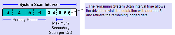 If there is still time remaining before the System Scan time expires, then outstations that still have secondary data available can be re-visited for a period limited by the Maximum Secondary Scan per O/S interval as many times as necessary until the System Scan time expires.