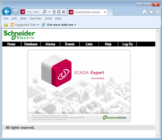 If the WebX home page is not displayed, there may be a certificate error. You may need to use an alternative address or port number. For more information, see Run a WebX Client in the ClearSCADA Guide to ViewX and WebX Clients.