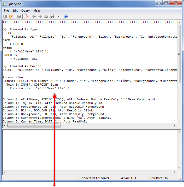 - Execute the query (see SQL Execution). The Query Processor executes your query and returns the appropriate result set. Depending on the settings you have in place in QueryPad, the results may be shown in the Information Pane. The Information Pane will also contain diagnostic data.