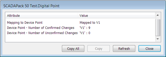 • Mapping to Device Point—This shows the device point to which the digital point is mapped, as well as the number of confirmed and unconfirmed configuration changes. For more information, see Device Point Mapping