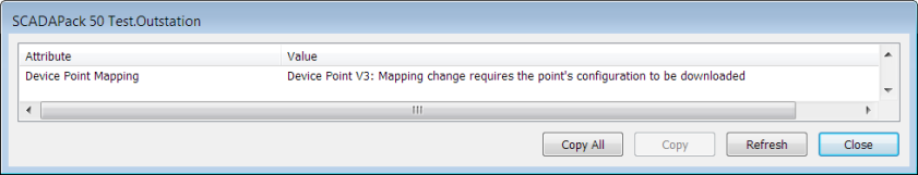 When you make a change to a device point's mapping in ClearSCADA, ClearSCADA will display a Device Point Mapping message in the Outstation Status window. An example is shown in the illustration below: