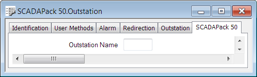 Use the Outstation Name field on the SCADAPack 50 tab to specify a device name. ClearSCADA can potentially receive messages from many devices. The Telephone Number and Outstation Name together identify to ClearSCADA which device this is (see Specify an Outstation Telephone Number).