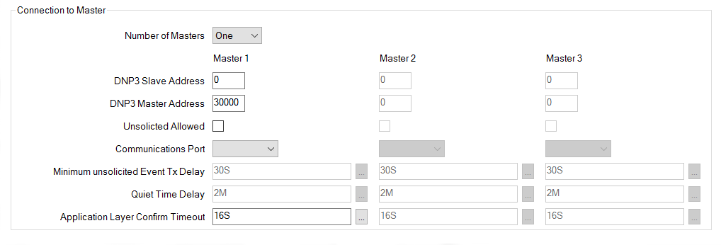 Use this combo box to select the number of master that the outstation will communicate with. The maximum available is three.