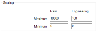 - Maximum and Minimum—Specify the required range for each set of values, to enable the SCADAPack x70 device to scale the raw integer values into engineering values and vice versa.