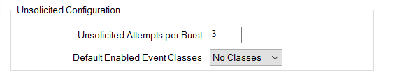 Use the combo box to specify the event classes that are enabled for unsolicited event generation by default (for example when the outstation restarts). This option is primarily used for compatibility with older DNP3 masters.