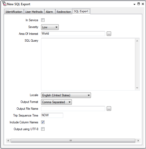 Use the fields on the SQL Export tab of the SQL Export Form to configure the settings that define the data that is to be exported, along with the format and location to which that data is to be exported.