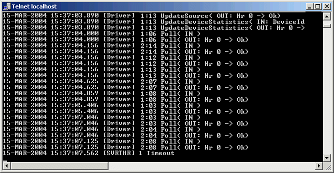 The default Telnet client for the computer is run and displays the relevant type of log data in real time.You can also use this technique to access Telnet monitoring for server logging and driver logging if required.