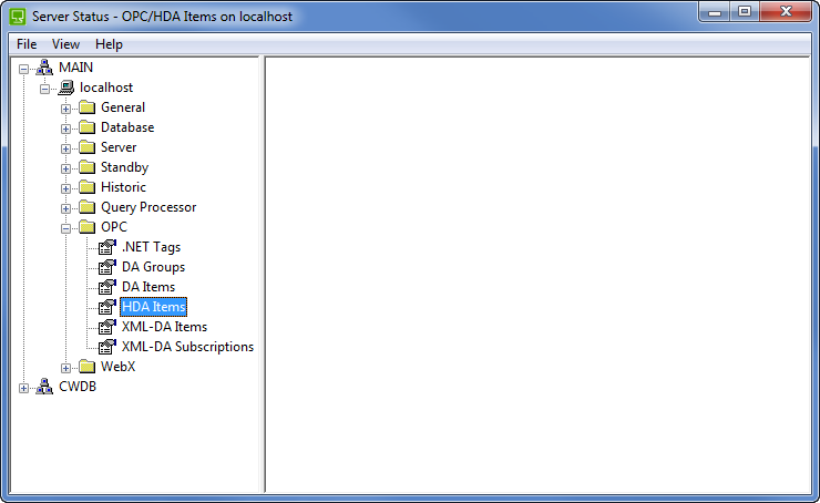 The HDA Items category provides status information for each trace that is shown on a Historic Trend.