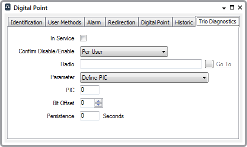 If the PIC that you require is not included in the list, but can be retrieved using a Simple Trio Diagnostics digital point, select the ‘Define PIC’ option and use other fields on the tab to specify the PIC details.