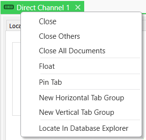 A context-sensitive menu is displayed when you right-click on the tab of a document that is open in the document display area.