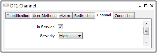 Use the fields at the top of the Channel tab to specify whether a channel is functional, and the severity of any alarms and events that are associated with the channel. For more information, see Configure the Basic Channel Properties in the ClearSCADA Guide to Simple Drivers.