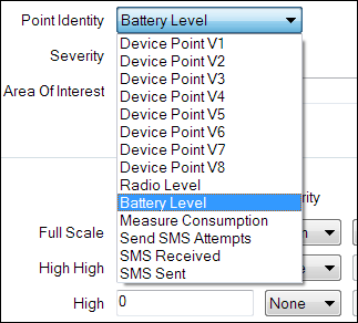 - You create a Battery Level analog point (see Common Point Properties) and then set the associated alarm thresholds (see Configure the Limits for an Analog Point in the ClearSCADA Guide to Core Point Configuration).