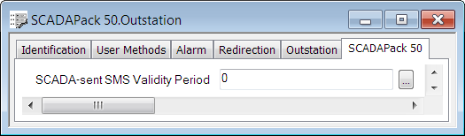 Specify a validity period for the SMS messages that ClearSCADA sends to the device. Enter 0 if you want to specify the default validity period, which is 2 days. Enter the validity period as a time interval. Enter the required interval in the OPC Time Format. You can enter the value directly in the field, or use the Interval window (accessed via the field's browse button) to specify the required value.The validity period affects successful communication between ClearSCADA and the device, as does the length of time that the device is in Sleep mode and the set periods when ClearSCADA sends messages to the device. You will need to specify a validity period that is appropriate for these Communications Availability settings (see Specify the Communications Availability of the SCADAPack 50 Device).