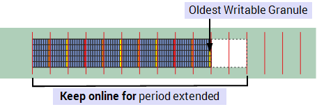 Used primarily on a Hot Standby (MAIN), this lists the oldest granule number that you can synchronize when the Keep online for period has been extended and the extended period is protected on the Permanent Standby. When the protected period expires this column does not display any values.