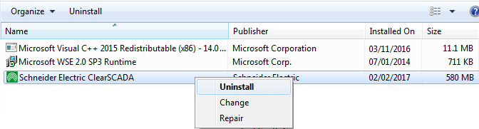- Select Schneider Electric ClearSCADA in the list of programs.