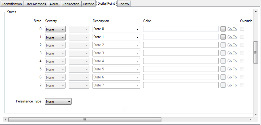 For information on Persistence Type and Persistence Duration, see Use Persistence to Stop Fleeting Changes in Value from Changing a Point State.