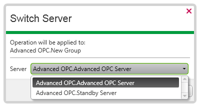 Use the Switch Server pick action to switch the server that the Advanced OPC Group is currently using.