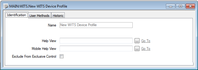 The WITS Device Profile Form shows a message advising you that an XML file has not yet been imported for this Device Profile item. When you have configured the Device Profile item, you can use the Import Profile action to import an XML device profile. For more details, see Importing a WITS Device Profile XML File