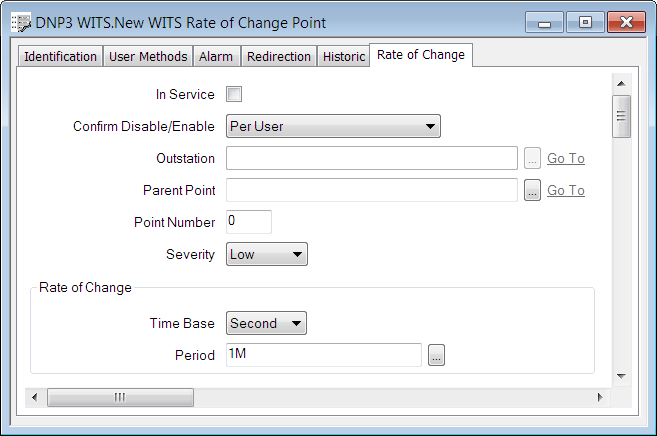 To configure a WITS Rate of Change Point database item, you use the WITS Rate of Change Point Form.