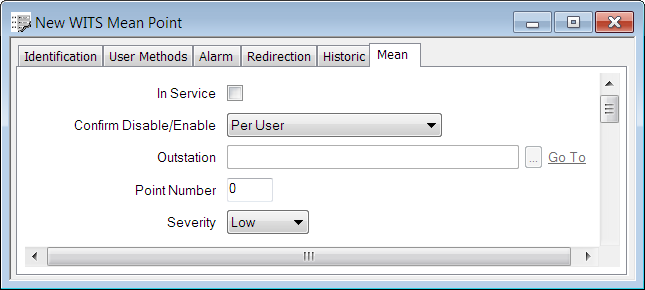 - Point Number—Enter the number that represents the virtual Analog Input point that will store the mean value. ClearSCADA cannot perform any validation on the number you enter. If the number you enter does not represent a valid virtual Analog Input point, then any configuration download to the device will not succeed. For more information, see the Field Device documentation.