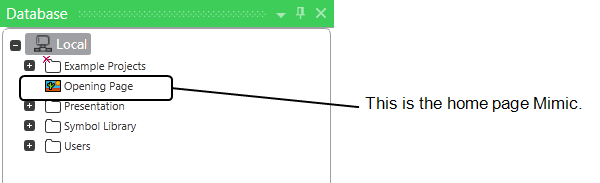 - Click on the plus + icon next to the 'Example Projects' Group. This expands the 'Example Projects' Group to reveal its contents—further Groups and Mimics.