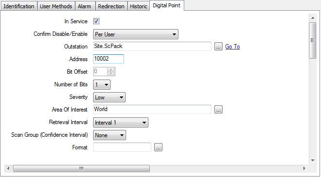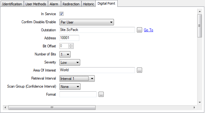 - Use the browse button feature of the Outstation field to associate the point with the 'ScPack' Outstation that you have already created.