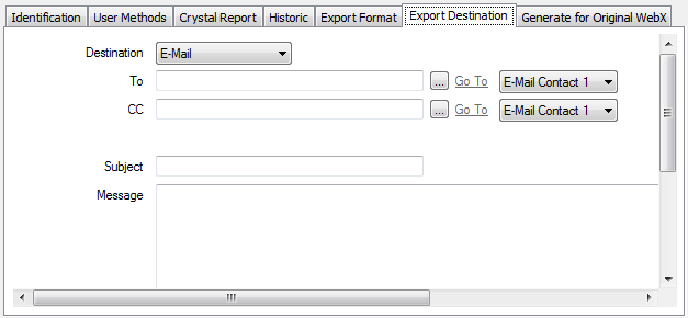 - Contains this configuration on the Export Destination tab of the Crystal Report Form: