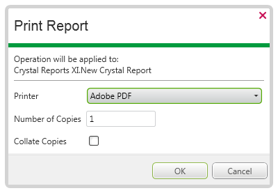 - Collate—If printing multiple copies of a multi-page report, use this check box to specify whether you want the printer to collate the printouts.